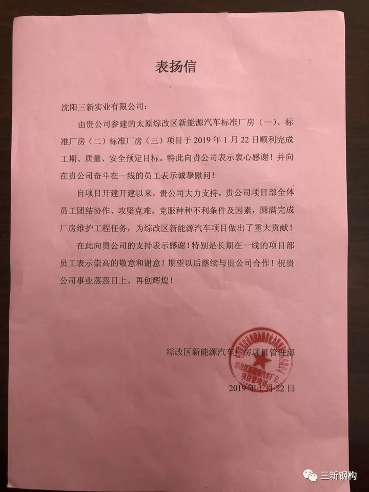 項目經(jīng)理邢玉寶代表工程項目部作太原項目總結(jié)報告。2018年,在公司上下鼎力支持下,工程項目部發(fā)揚打硬仗能吃苦的精神,克服任務(wù)重、工期緊、要求高等困難,圓滿高質(zhì)量按工期完成任務(wù),在工程施工技術(shù)管理方面取得可喜的進(jìn)步和成績,受到山西綜改區(qū)新能源汽車項目管理部的好評,并致感謝信。