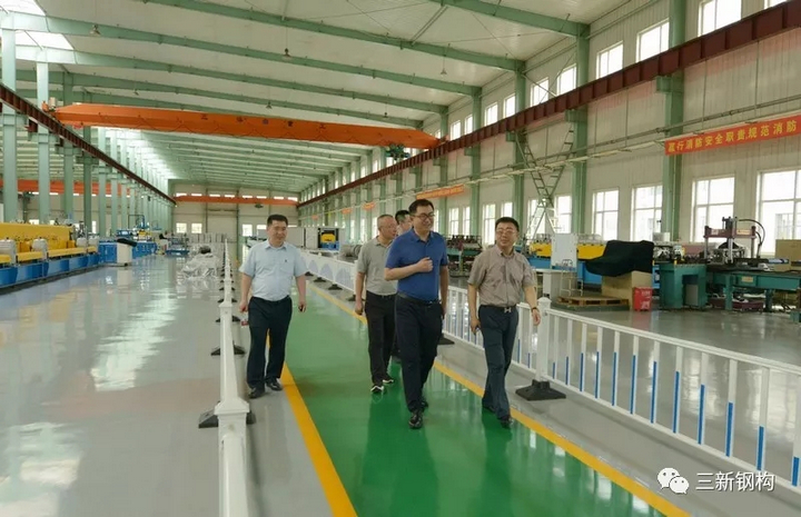 2019年7月3日,盛夏沈城,風(fēng)和日麗。遼寧省住建廳曹桂喆副廳長、建筑業(yè)改革處王曉偉處長、張慶峰副處長一行來到三新集團(tuán)調(diào)研。