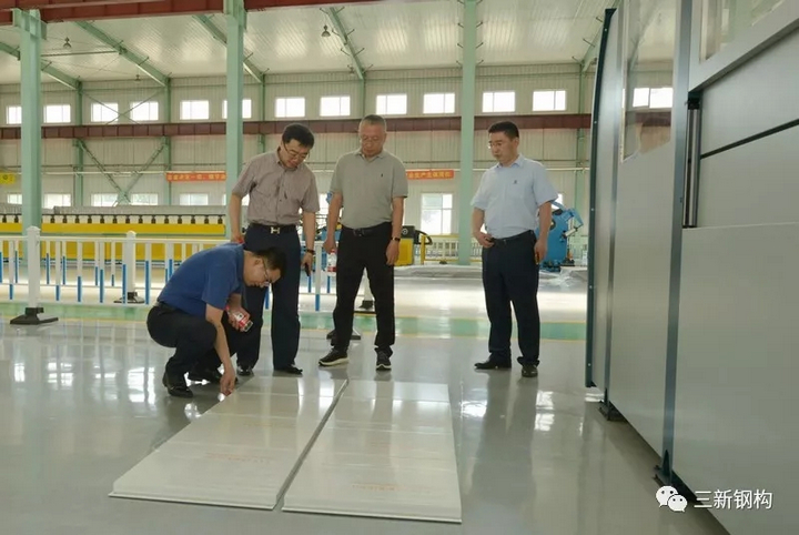 省廳領(lǐng)導(dǎo)在公司總經(jīng)理洪長禧的陪同下參觀了公司裝配式建筑及幕墻生產(chǎn)基地和生產(chǎn)線,并對三新裝配式建筑實(shí)體模型和部品進(jìn)行了詳細(xì)的了解。曹廳長、王處長對三新裝配式鋼結(jié)構(gòu)建筑體系及先進(jìn)的生產(chǎn)裝備給予了高度的評價(jià),認(rèn)為產(chǎn)品設(shè)計(jì)理念、制作工藝、安裝水平達(dá)到國內(nèi)領(lǐng)先。
