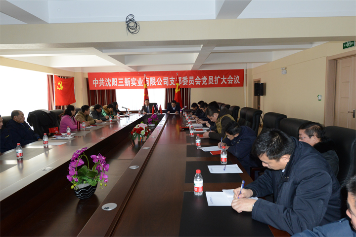 2014年12月13日上午9:30,中共沈陽(yáng)三新實(shí)業(yè)有限公司支部委員會(huì)黨員擴(kuò)大會(huì)議在廠區(qū)綜合辦公樓四樓會(huì)議室召開。會(huì)議公布了本年展黨員名單,新黨員進(jìn)行了表態(tài)發(fā)言;會(huì)議討論并確定了明年發(fā)展黨員計(jì)劃;全體參會(huì)人員一同學(xué)習(xí)了黨章內(nèi)容。黨支部書記洪長(zhǎng)禧總經(jīng)理以“在公司工作中如何發(fā)揮黨員先進(jìn)模范帶頭作用“為題做了主旨發(fā)言。最后由黨支部書記于東云董事長(zhǎng)領(lǐng)誓,新黨員向黨旗宣誓并進(jìn)行佩戴黨徽儀式。通過本次會(huì)議,全體參會(huì)人員受到了一次愛黨教育及思想的洗禮。